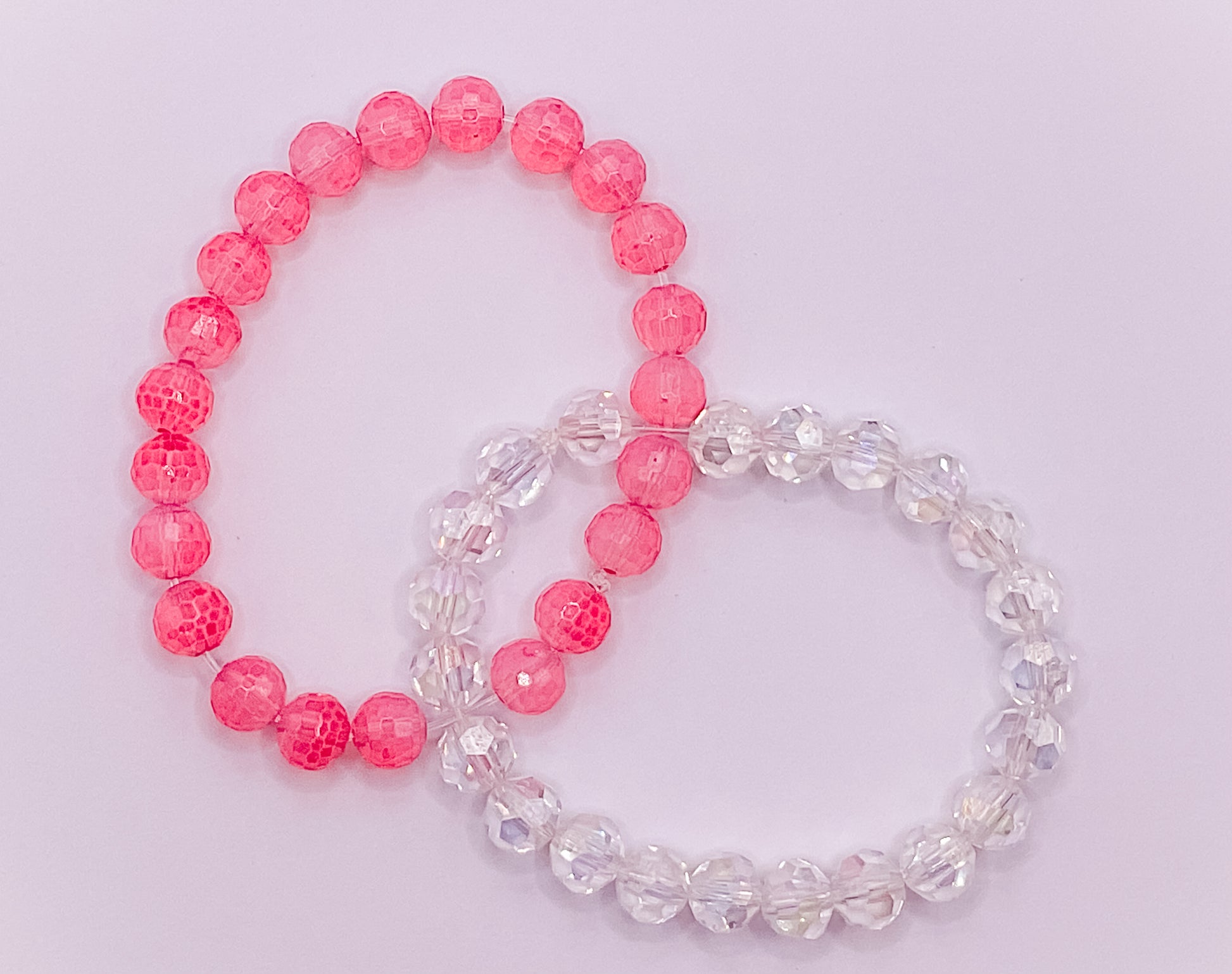Pink and clear crystallized beaded bracelets (all bracelets are stretchy) fits smaller wrists